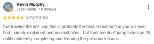 " I signed up for George's course during my first season of skiing earlier this year. I love the video courses because it gives practical advice demonstrated in a clear, concise manner, and I regularly review the materials every now and then, especially before hitting the slopes. While it cannot replace being actually on the slopes to master the techniques, the course provides useful reminders about what to do."